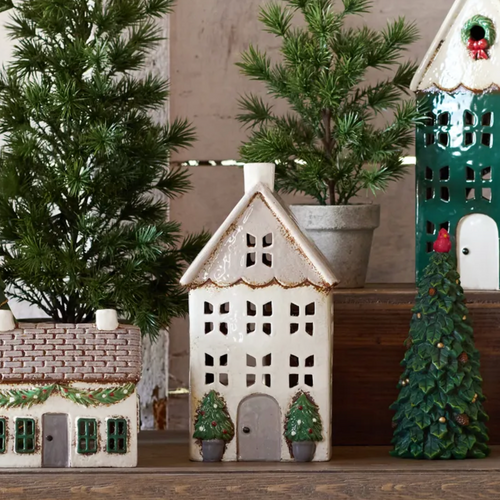 Grande Chalet Ceramic Tea Light Village Piece | Christmas Green