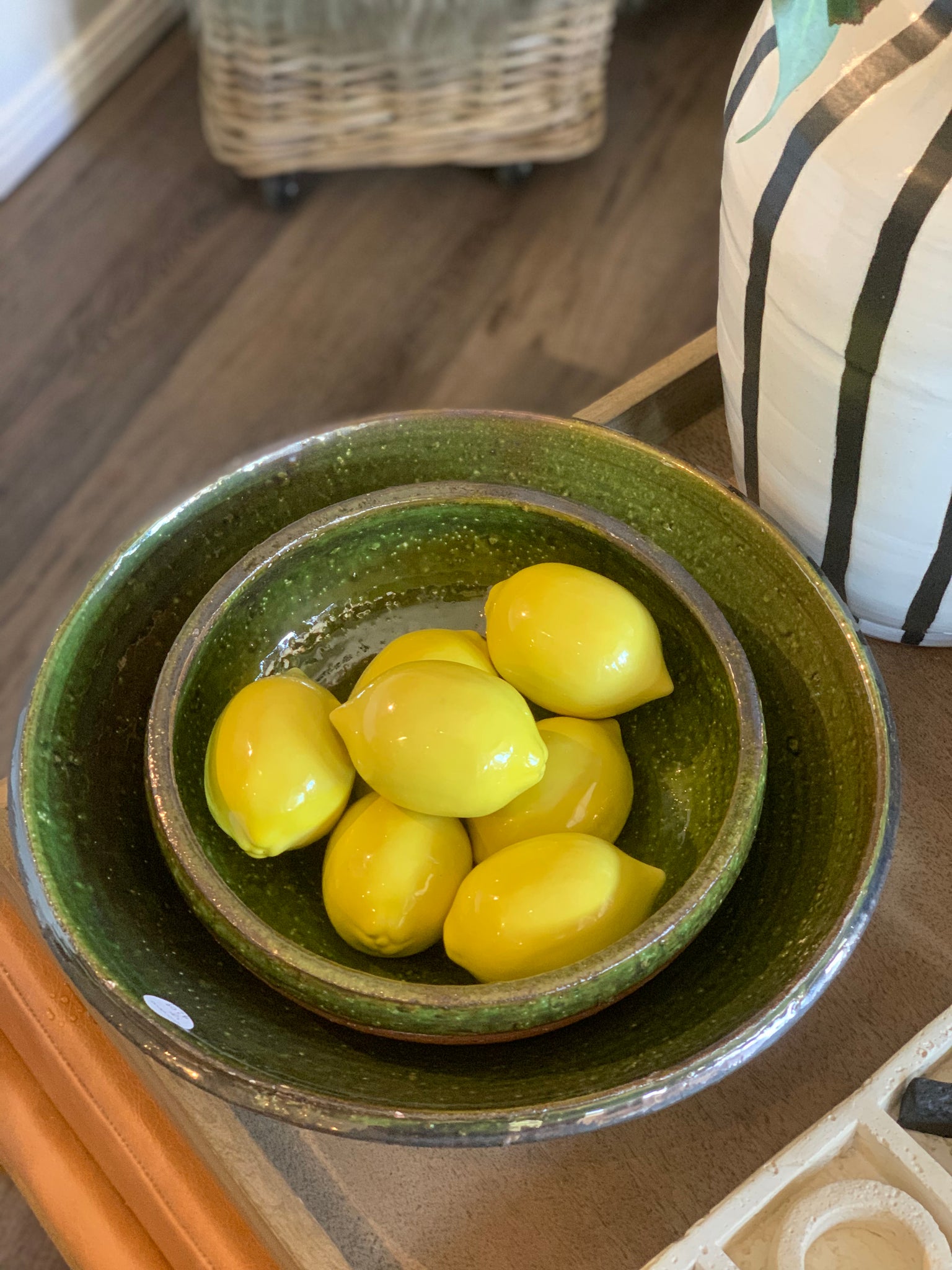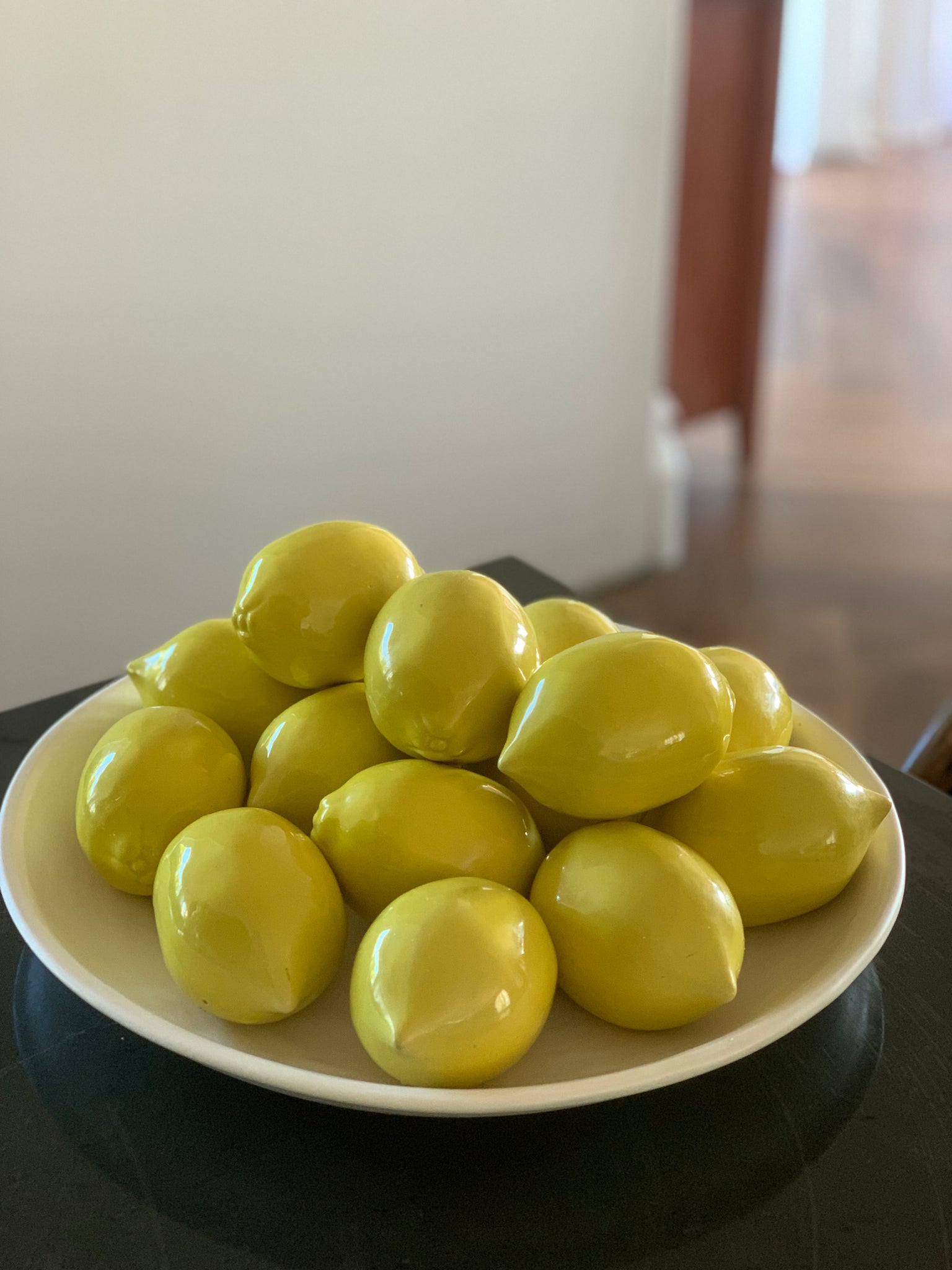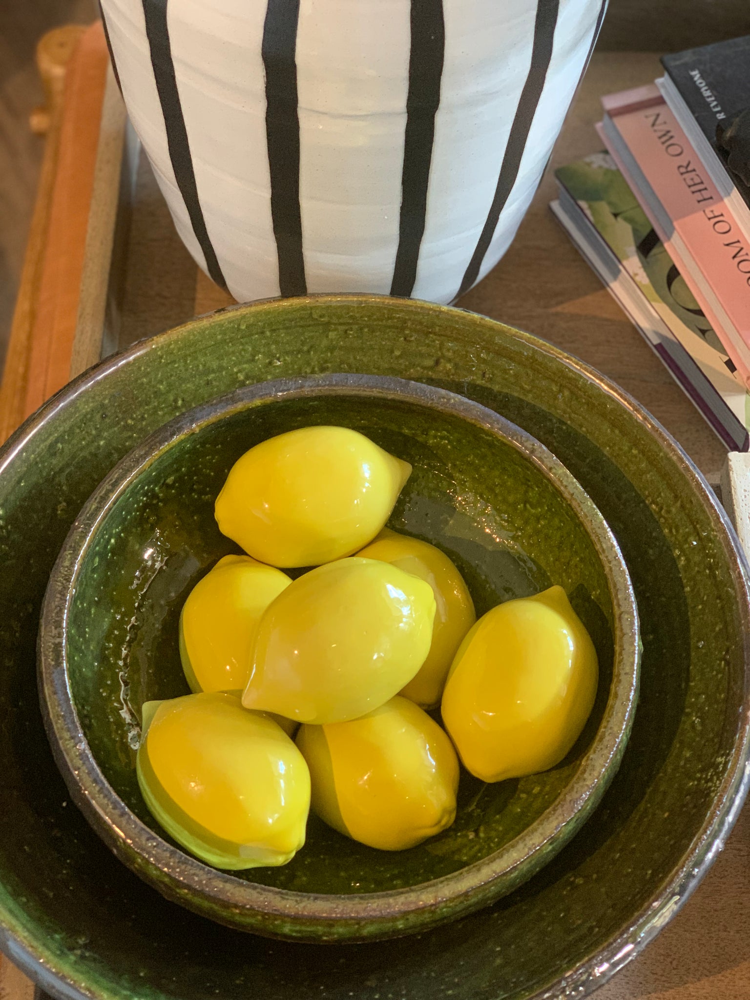 Hot of the press!! These ceramic lemons are the coolest styling piece. A single piece looks great as does a bowl full.