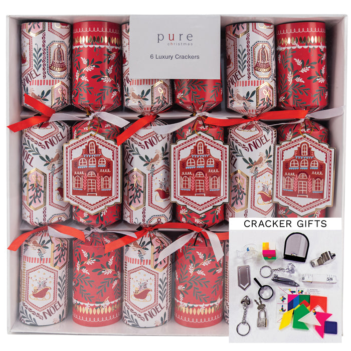 Style your table with these beautiful luxury Euro look Crackers with a Red and White house design.
