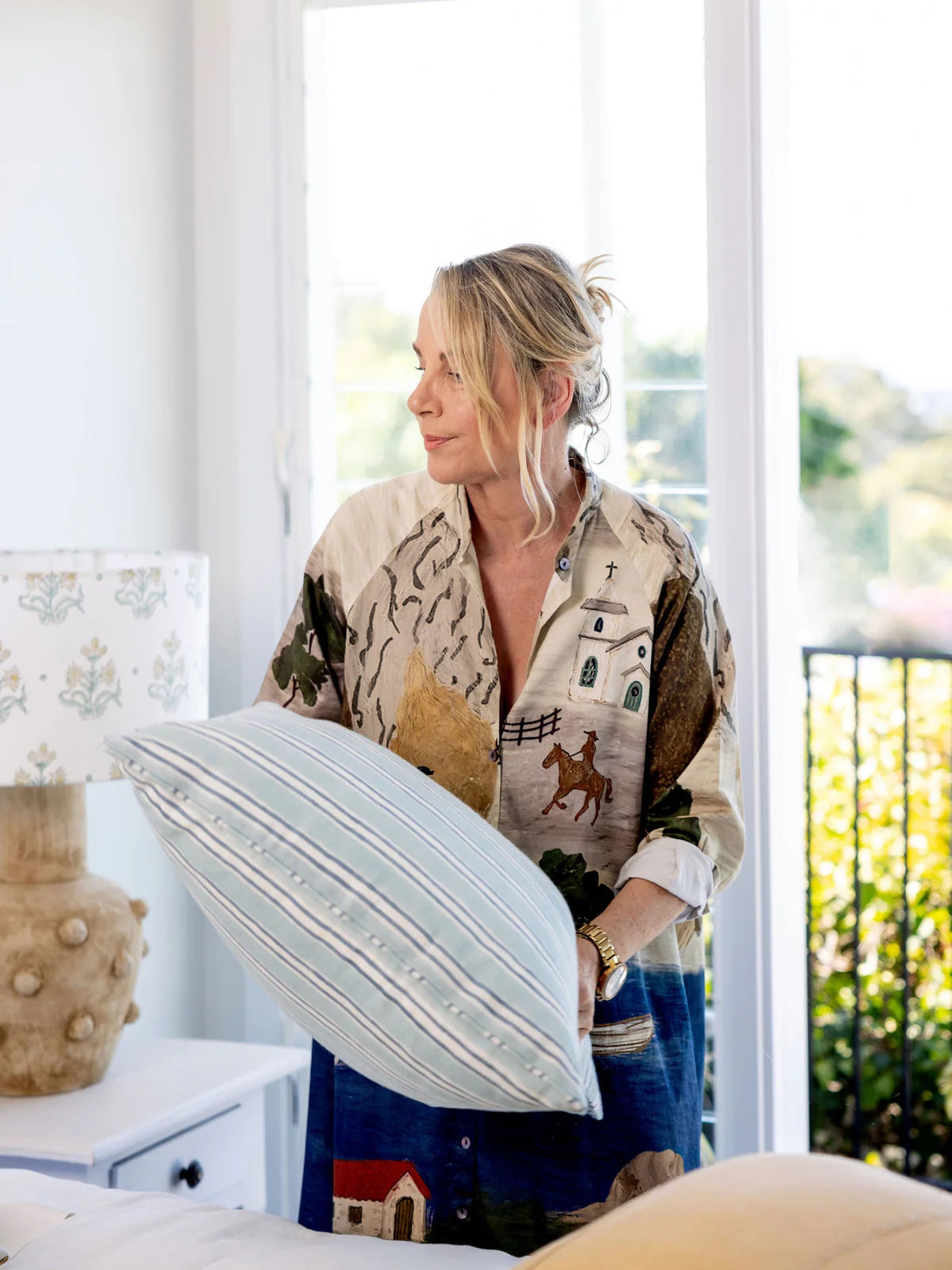 Villa Palladio is an exquisite property in Jaipur that features bold and fearless use of colour, patterns and stripes. Our range is designed in Australia by Viva Designs and hand printed and made in Rajasthan, India on 100% Organic Linen. Comes complete with insert