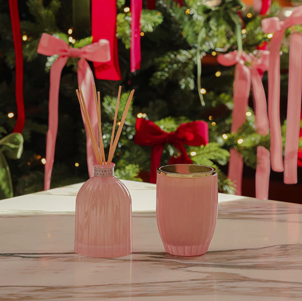 This limited edition soy candle is wrapped in love, housed in a blush pink vessel and speckled with glittering gold.